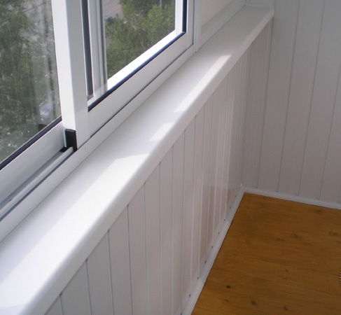 Пластиковая вагонка – отделочный материал, который подходит для обшивки любых балконов и лоджий вне зависимости от типа остекления. Пластиковая вагонка представляет собой пластиковый профиль в виде панелей шириной 10 см, имеющий специальные пазы для соединения панелей друг с другом. Благодаря соединительным пазам стена, отделанная вагонкой, становится рельефной, и помещение визуально «расширяется».