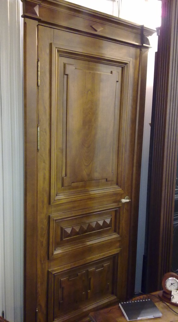 Дверь из массива ольхи и мдф. Покрытие эмаль и патина золото.