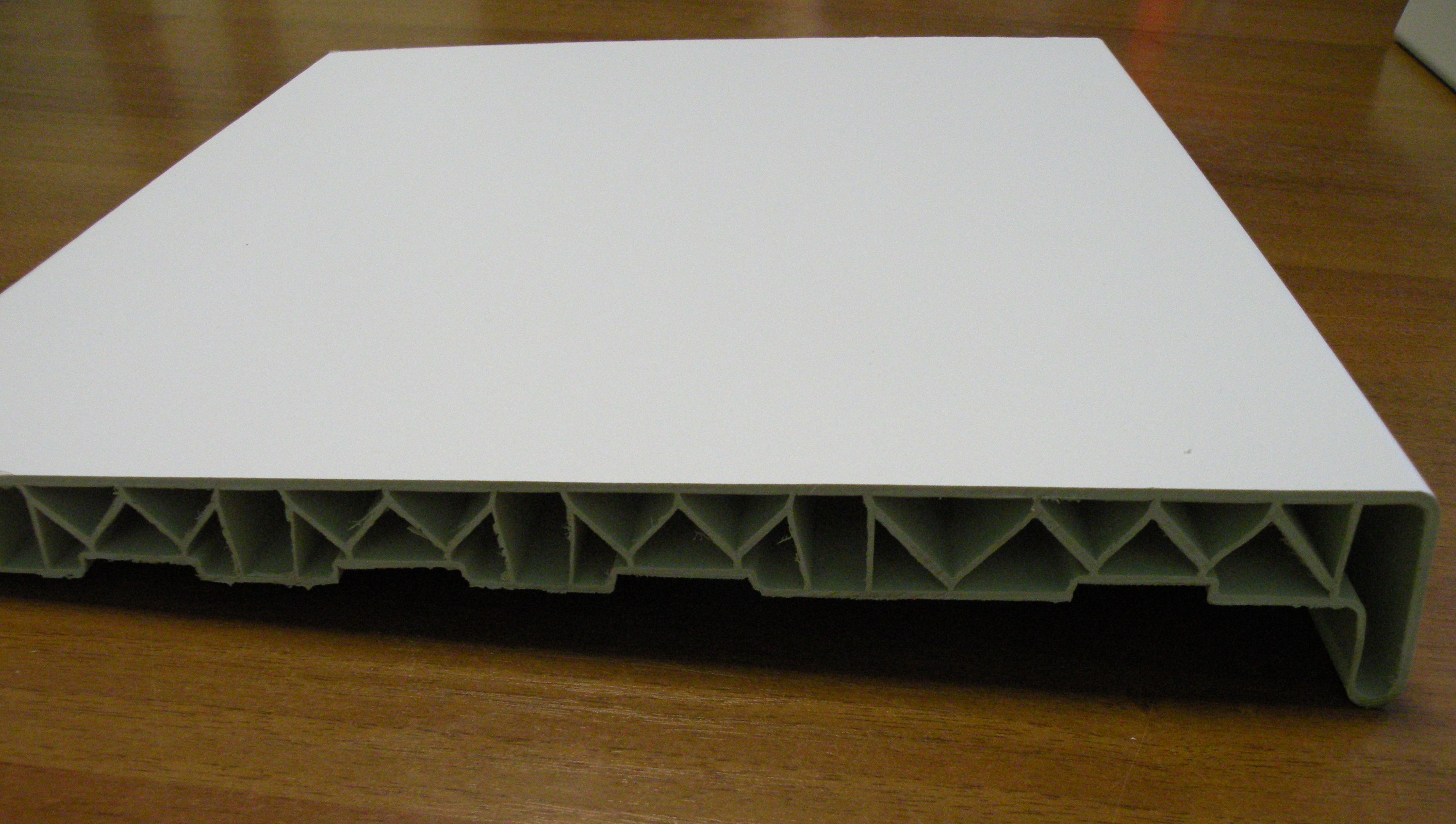 Панели для монтажа откосов в стандартном исполнении изготавливаются толщиной в 10 мм. и имеют размеры: 1500х3000, 1540×3000, 2000х3000, что позволяет обеспечить малоотходный раскрой и избежать стыков при монтаже пластиковых откосов. Панели для установки откосов - с одной стороны облицованы белым матовым, глянцевым или кашированным по Renolit цветом, а с другой стороны - подложкой. Подложка изготавливается из более дешевого листового материала - ударопрочного полистирола (УПП) или ПВХ.