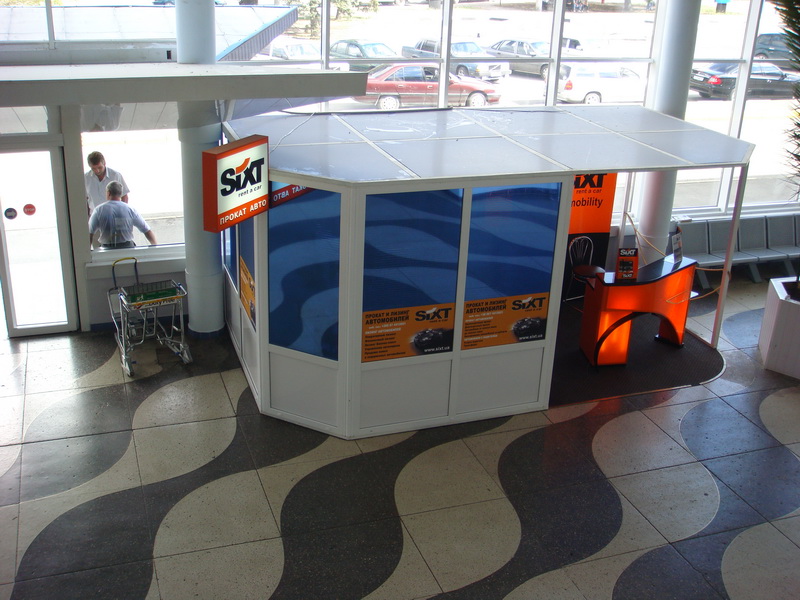 Конструкция из металлопластика в здании аэропорта Симферополь. Прокат авто SIXT.