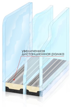Применяется в случае повышенной шумовой нагрузки. Имеет различное расстояние между стеклами (что снимает явление резонанса), а также разную толщину самих стекол. Наружное стекло – самое толстое (обычно 6 мм), что понижает постоянные шумы.