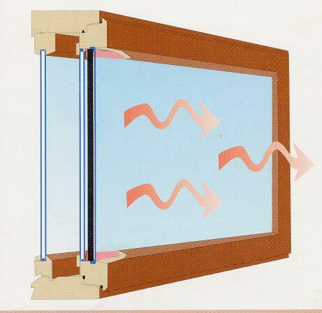 Стекло с низкоэмиссионным покрытием, обладающее низкой излучательной способностью. Эти стекла обладают лучшей теплоизолирующей способностью.