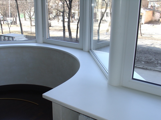Наша компания «Универсал-камень» производит изделия из искусственного камня. Мы предлагаем к Вашему выбору подоконники из искусственного камня. Искусственный камень абсолютно однородный и крепкий материал, долговечный. Вы только представьте себе- подоконник плавно переходящий в кухонную столешницу, стол, полку и т.д. при этом может принимать любую форму, быть прямоугольным, круглым…